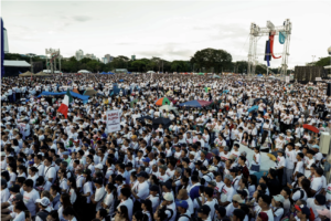 今回の抗議は、約32万人がリサール公園に集結。政府は軍警察を総動員し最大警戒に入ったが、平和的な進行を想定している